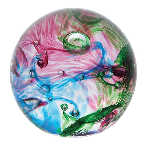 Radiant swirls of blue joyfulness are frozen inside this vibrant paperweight. Handcrafted using compressed air to shape the glass, it brims with energy and colour. Gift to share happiness or display as an uplifting decorative piece.
