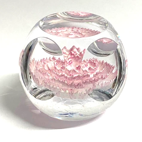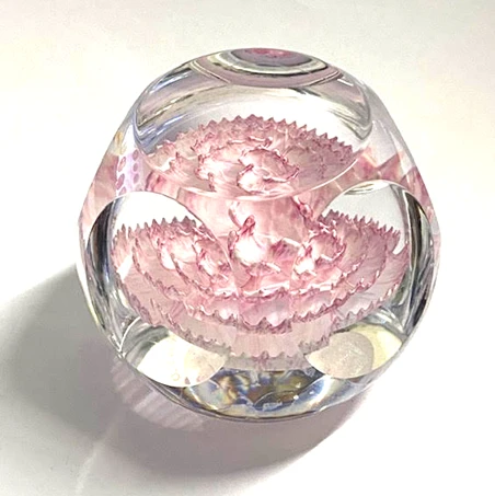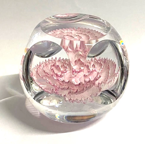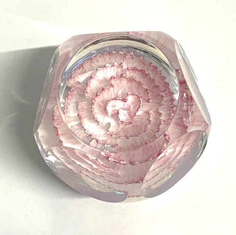 A petite paperweight, this beautiful piece with a pink carnation embedded into the centre is the perfect occasion gift for her.