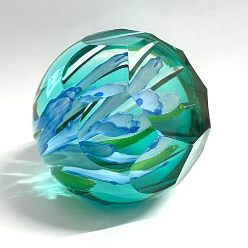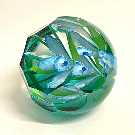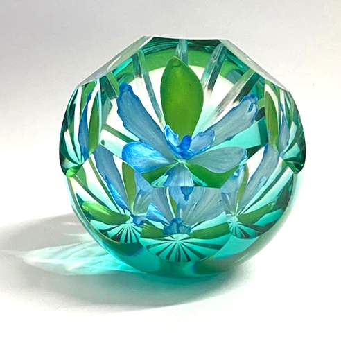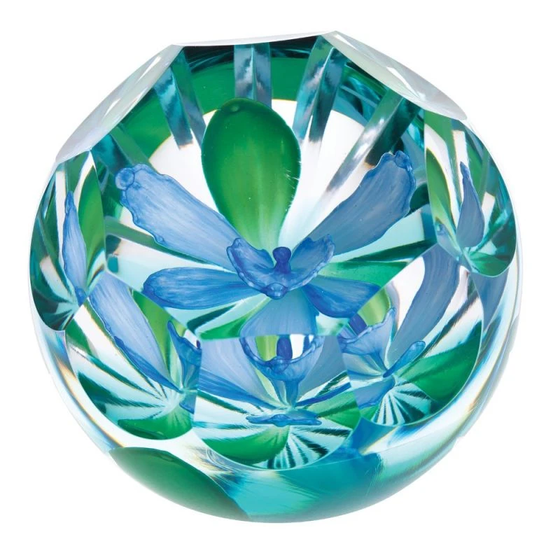 A rare blue jewel of the orient sparkles within this intricately cut weight.
