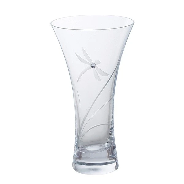 Real Swarovski crystal and a hand engraved Dragonfly motif accent this lovely vase.