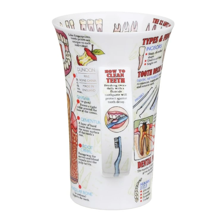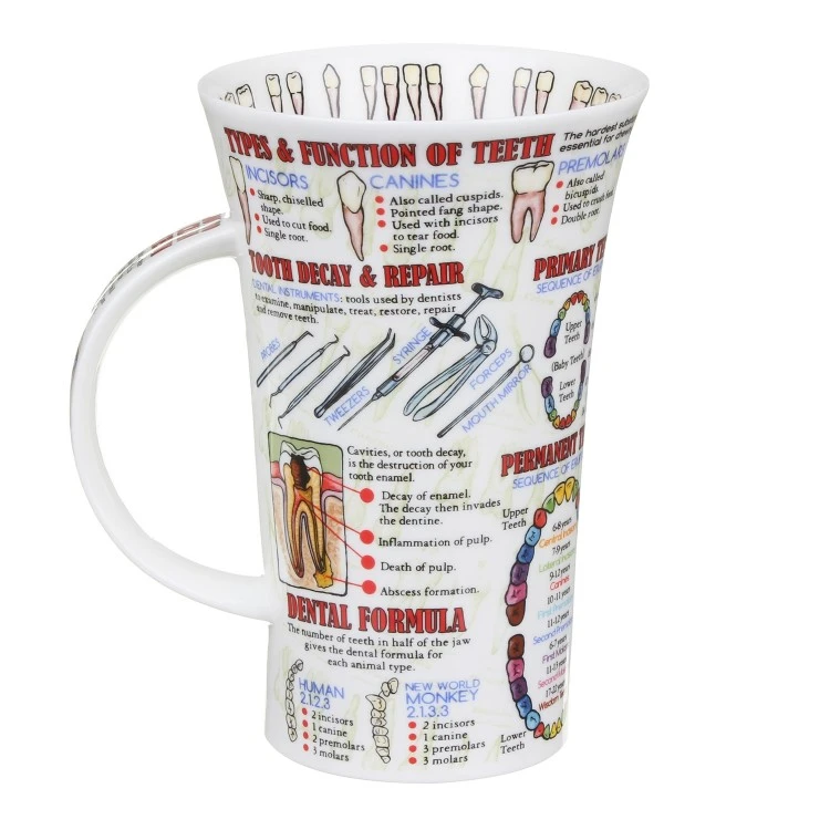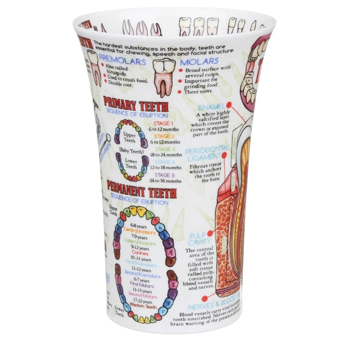 Drill into the root of your Dental knowledge with this Teeth mug by Caroline Dadd. Featuring highly colourful and detailed diagrams, learn about the sequences of eruptions and the different dental formulas whilst enjoying a mug of your favourite brew.